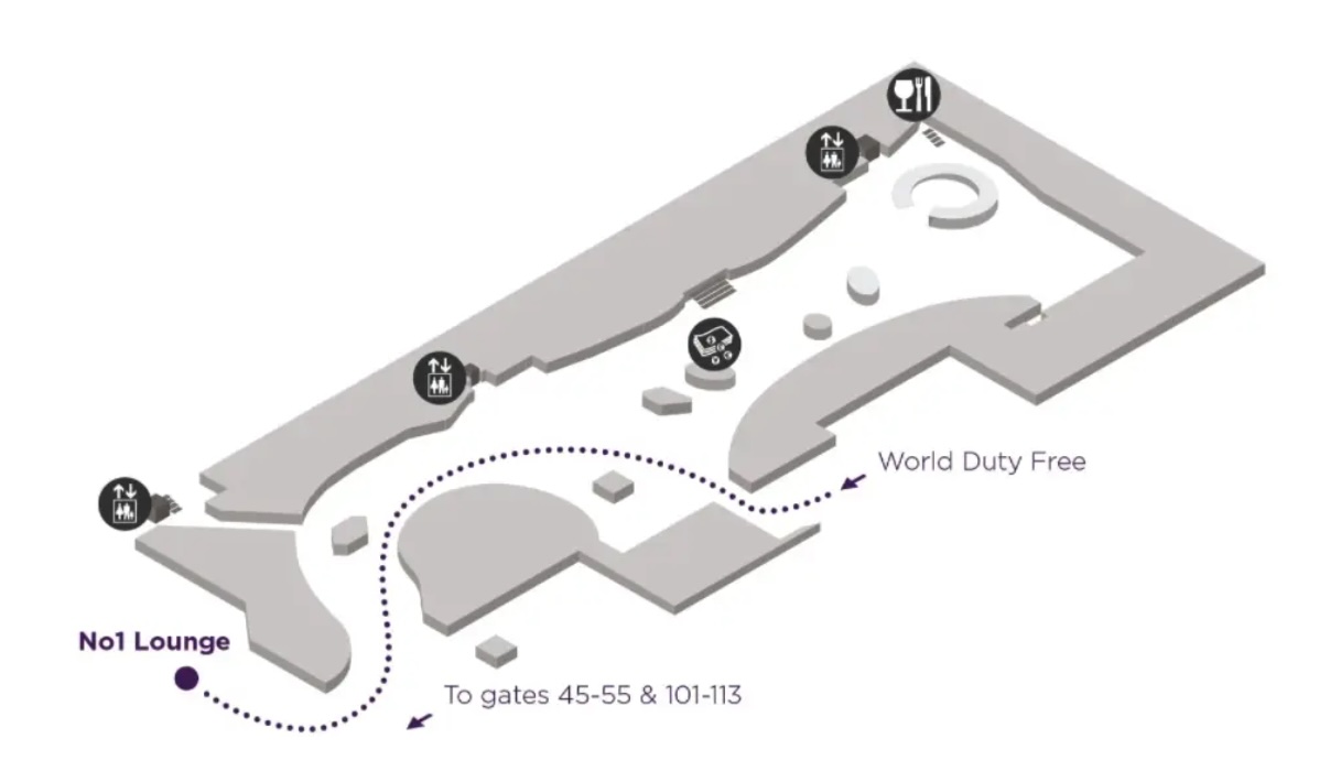 Airside - After passport control and security check, follow the signs for 'Airport Lounges'. After entering the lounge pavilion, the entrance is located straight ahead.