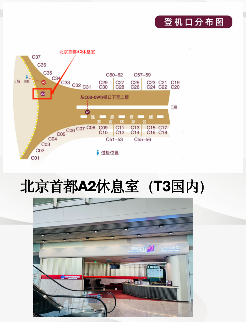 Airside -The lounge is located next to gates C34 and C35, Domestic quarantine area, T3 Terminal
