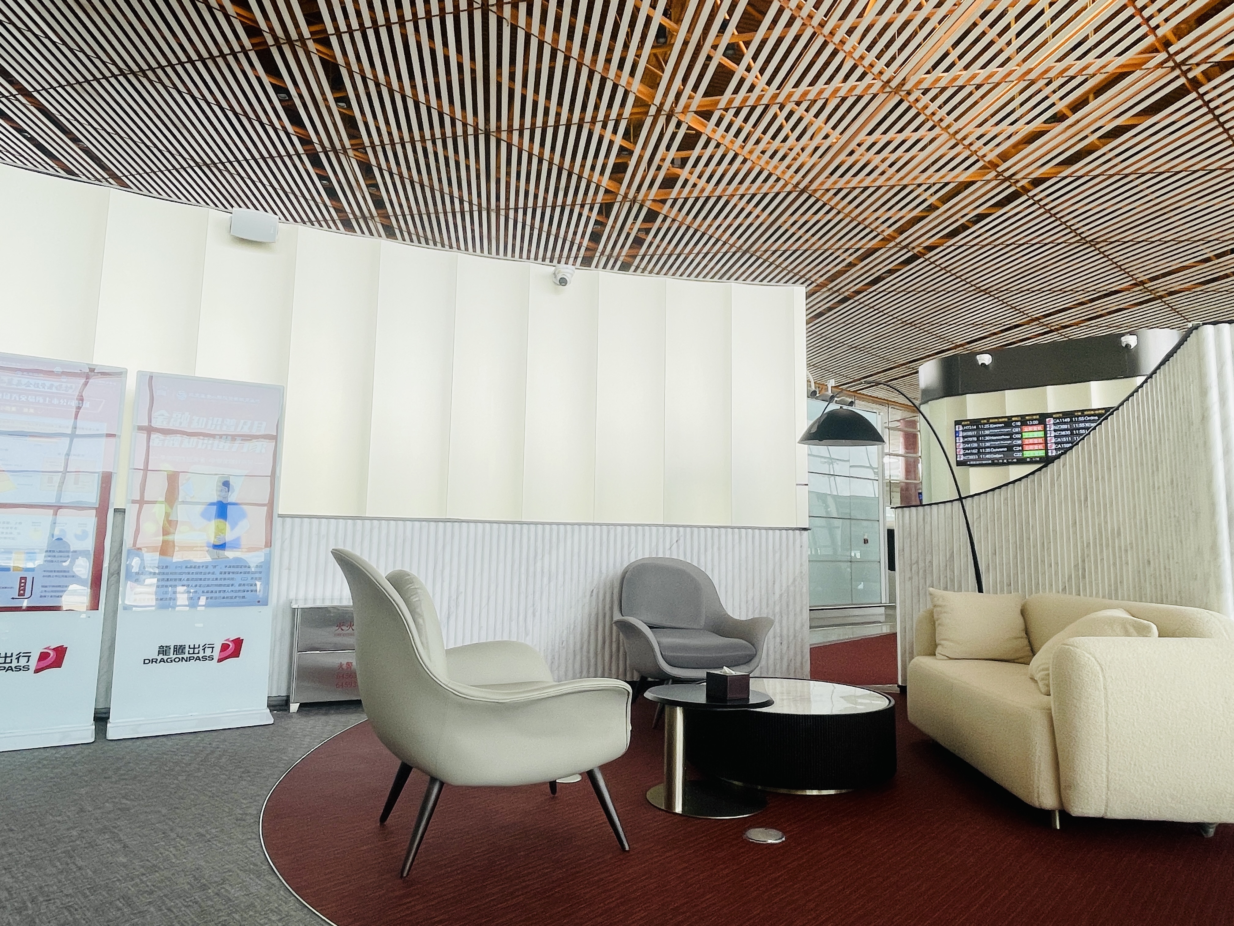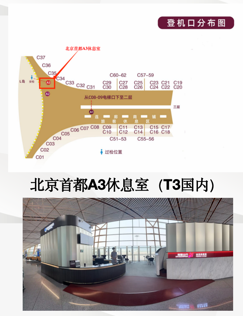 Airside -The lounge is located next to gates C34 and C35, Domestic quarantine area, T3 Terminal