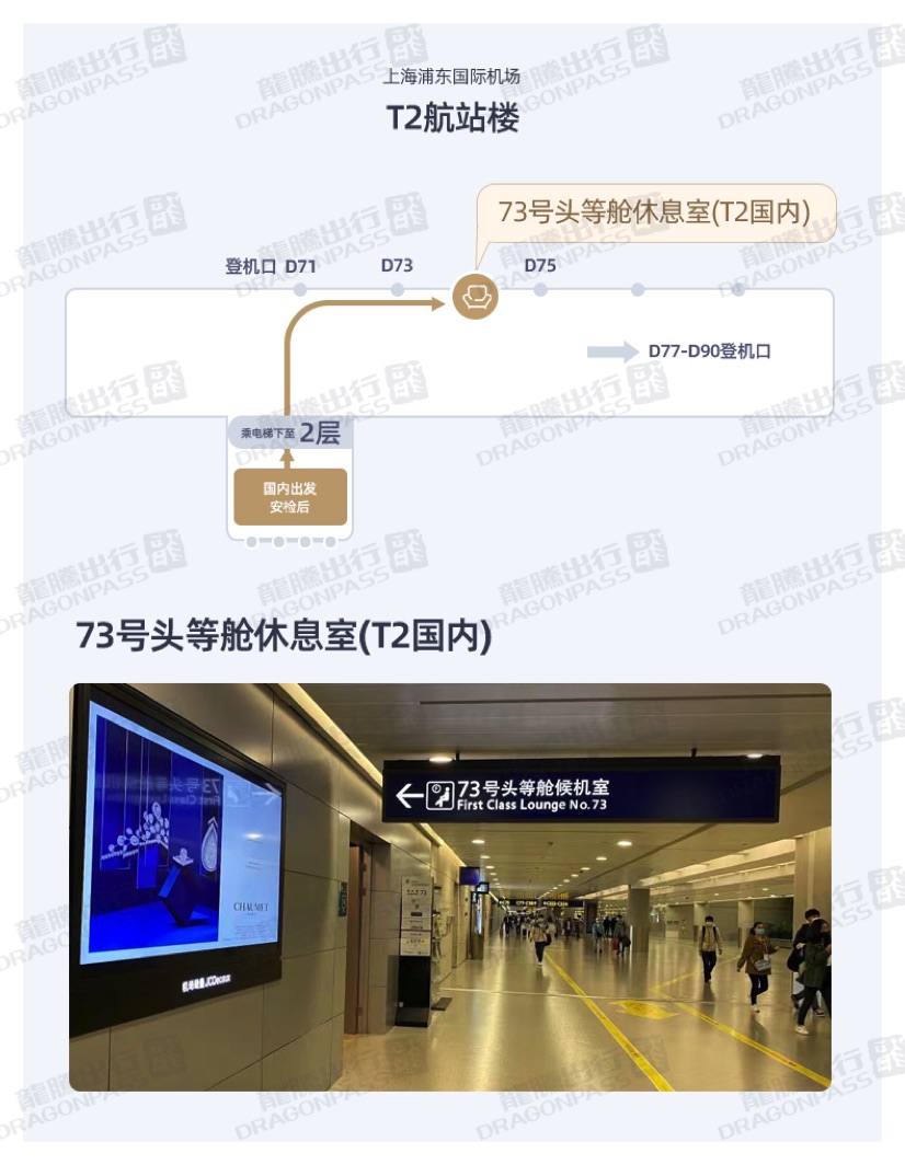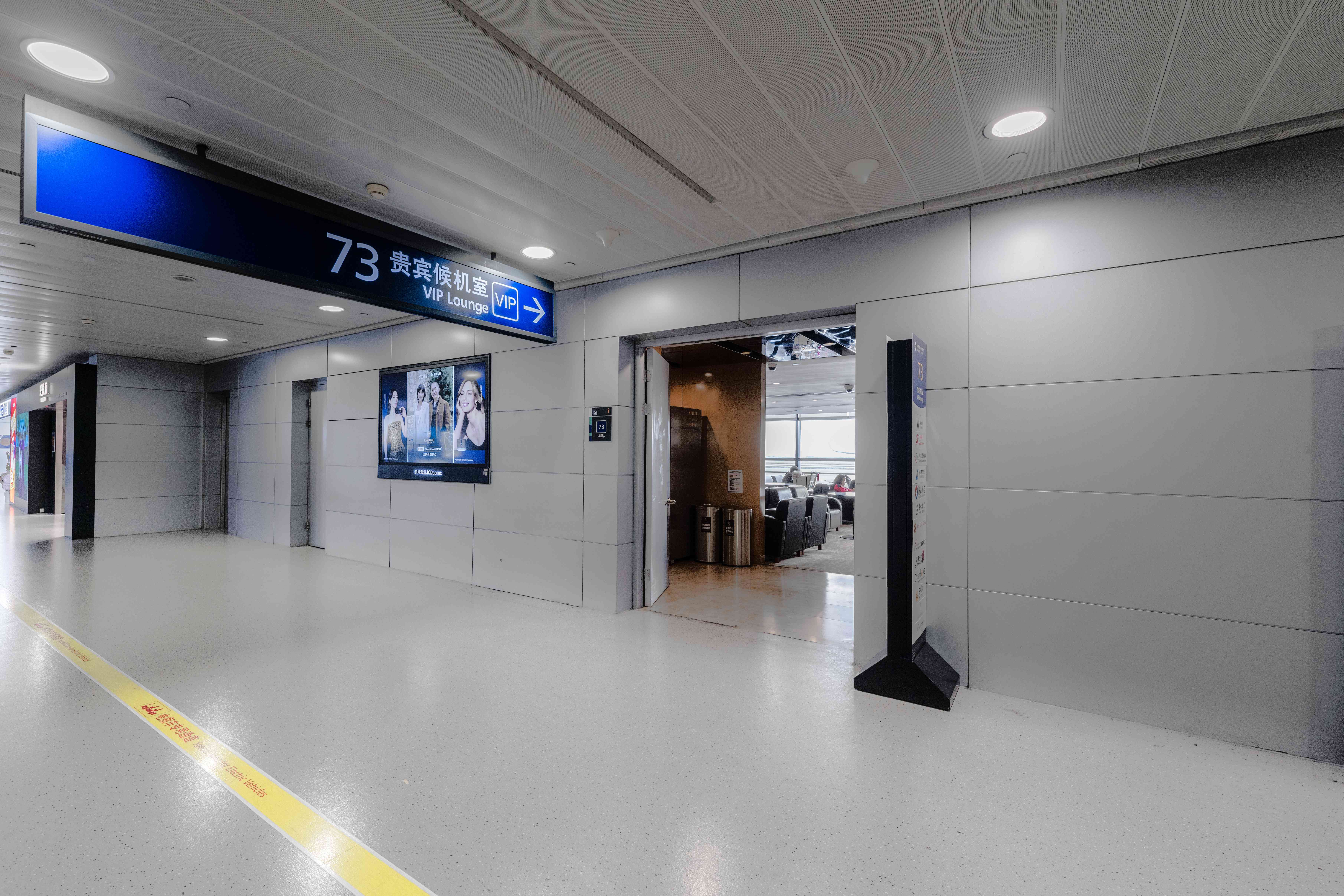 Airside - After passport control and security check, proceed down to Level 2, turn right and walk straight around 100 meters, the lounge is opposite to the Boarding Gate 76, 100 meters to the Gate 73.