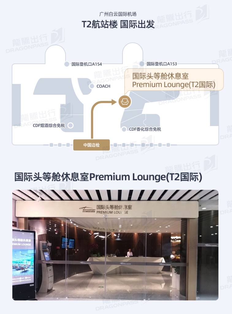 Airside - After passport control and security check, from Gate 48 of the departure hall of Terminal 2, go straight to the Q zone of the check - in island. After passing the "Inspection and Quarantine, Customs, Frontier Defense" at three levels, go straight to the logo "Premium Lounge".