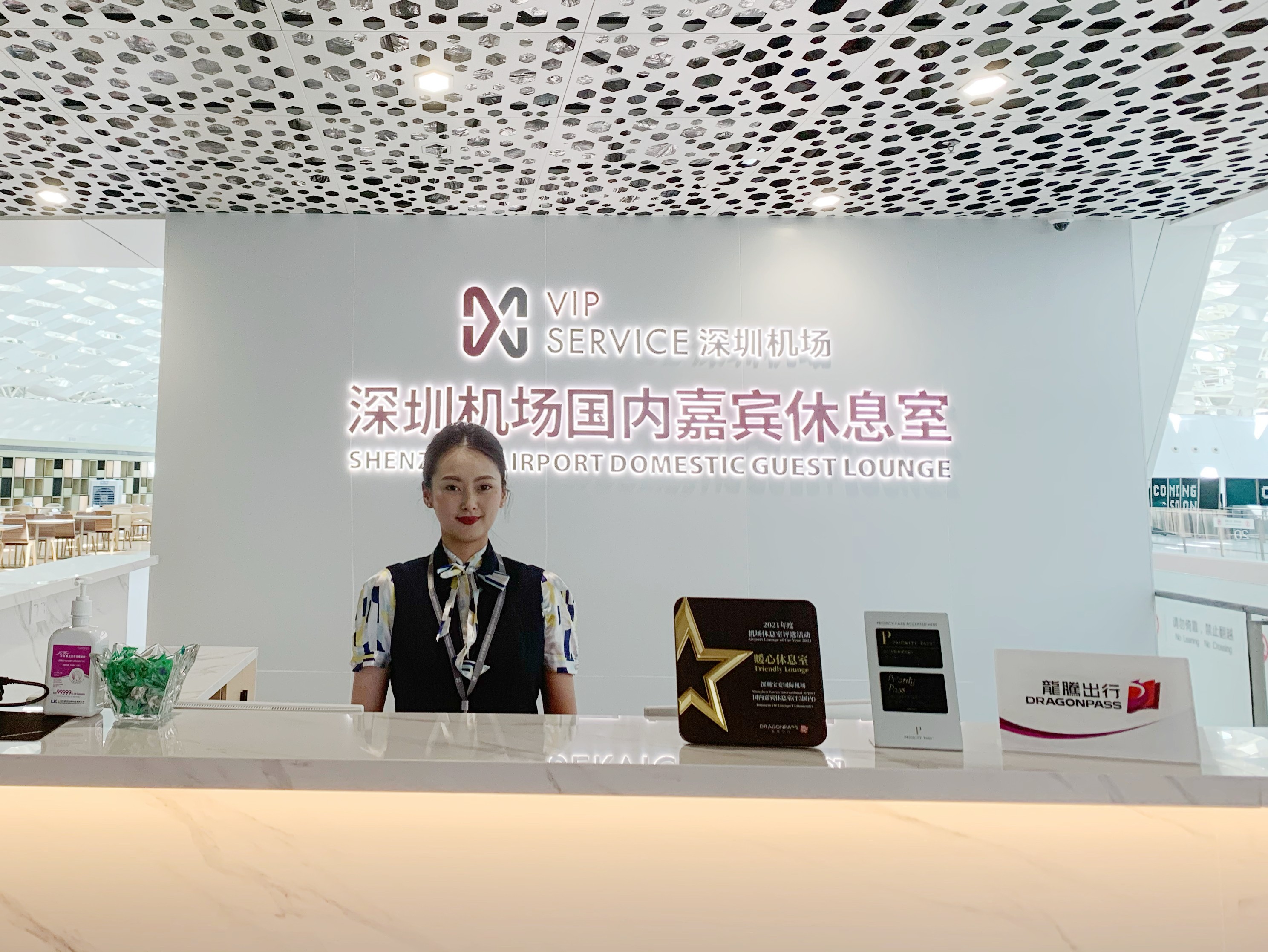 After security check, the "Shenzhen Airport Domestic Guest Lounge" on the left of the escalator