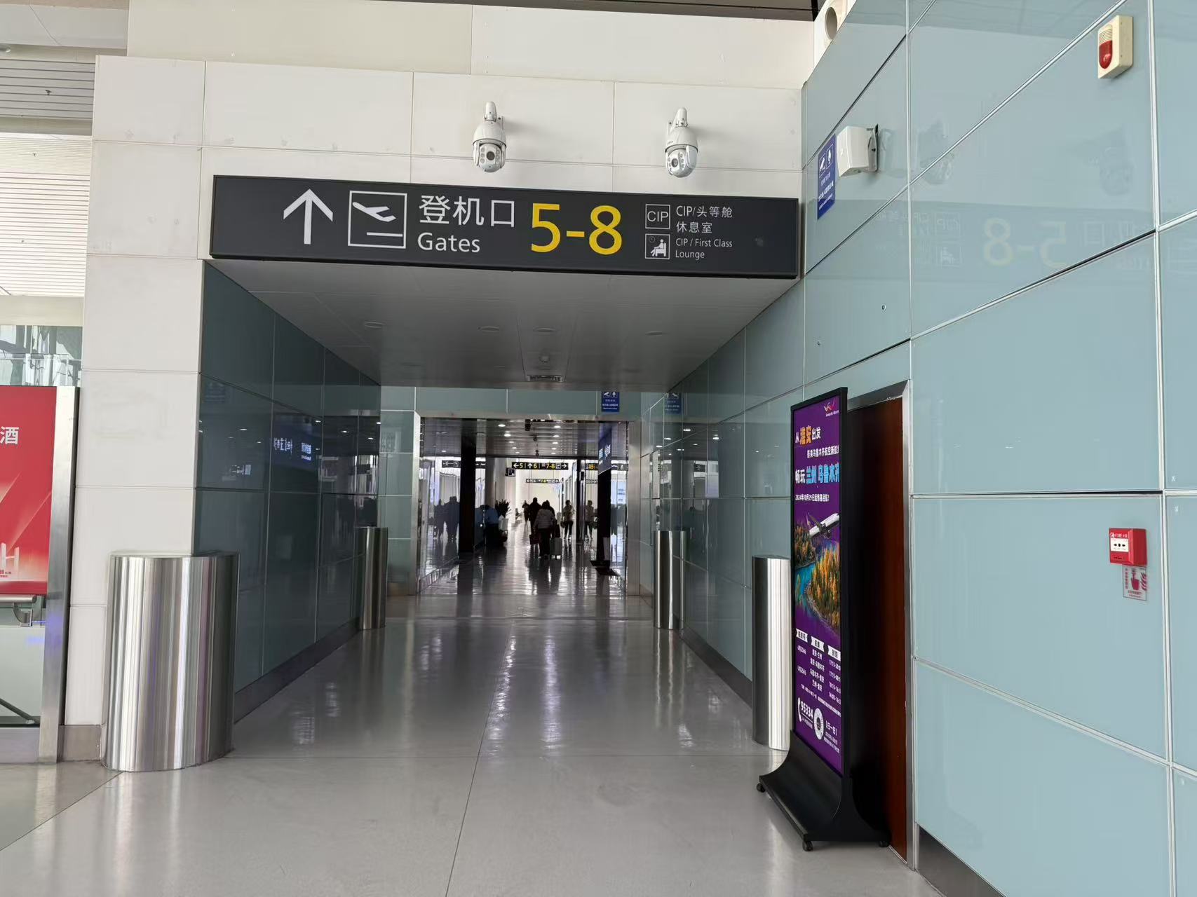 Take the escalator on the right to the second floor.