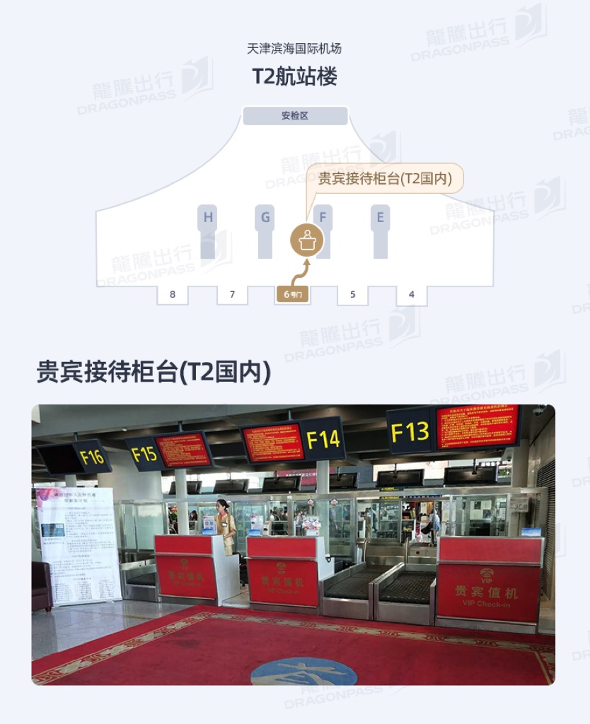 Please present DragonPass Membership upon arrival at F13 - F15 VIP Reception Counter opposite Door No.6, the lounge will offer dedicated check-in desk (also for luggage) and a dedicated fast track lane at the security area. Not available to passengers flying with Spring Airlines, 9 Airlines, China United Airlines Tibet Airlines and some special airlines.