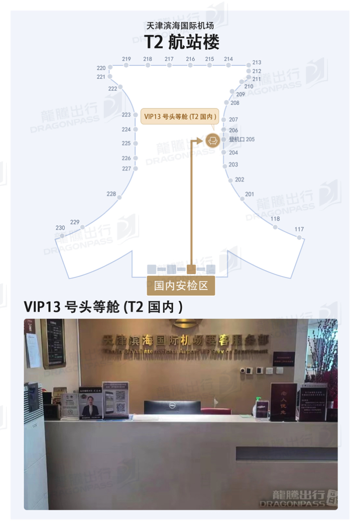 - Please present DragonPass Membership upon arrival at F13-F14 VIP reception center opposite Door No.6 in Domestic Departure Hall of Terminal 2, the staff will assist you to handle Boarding Procedures. In addition, the Express Security Check is also available. You can either proceed to the lounge directly after Security Check.