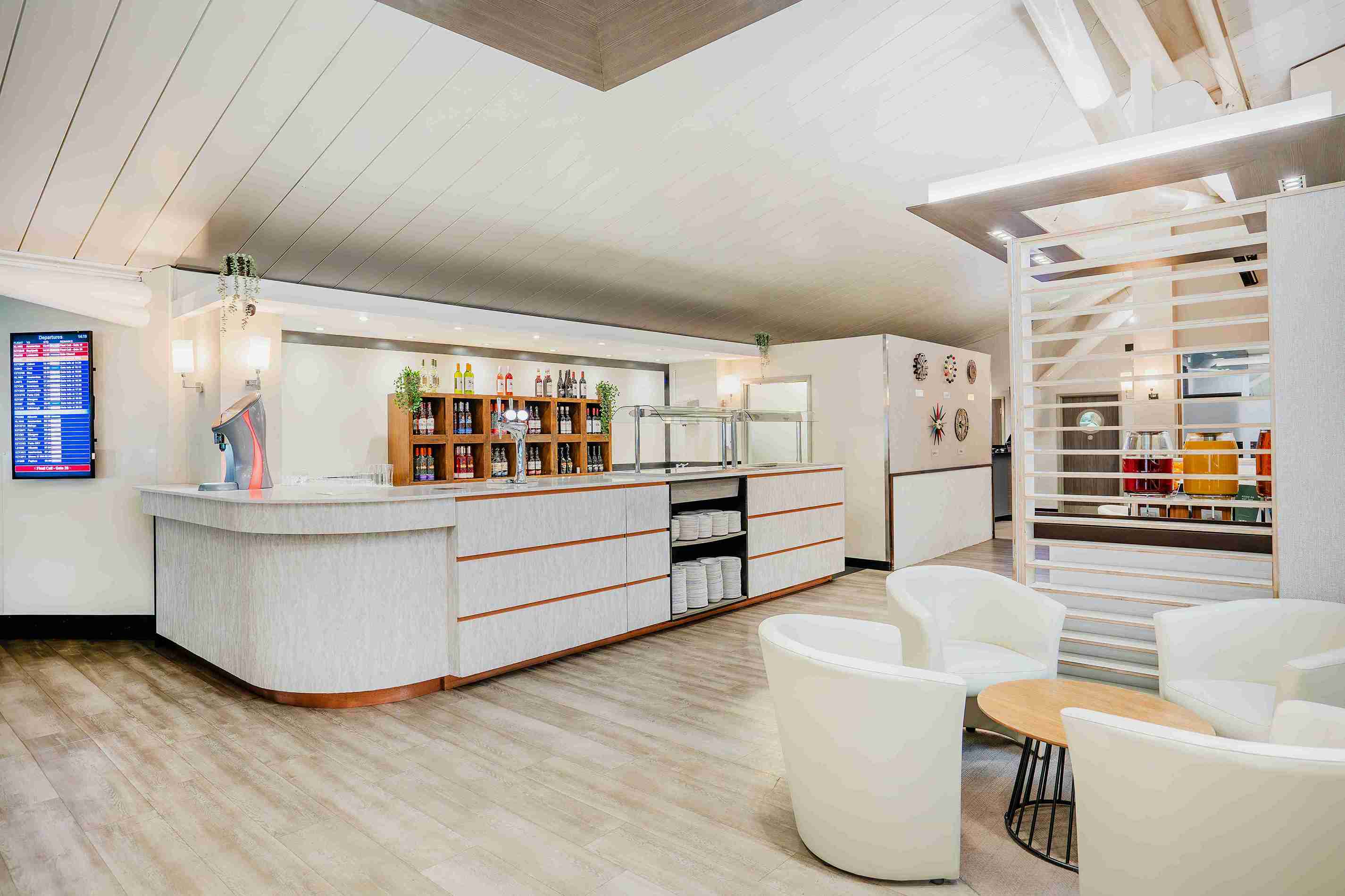 Airside - After security and passport control, pass through Duty Free, on the left-hand side is a stairway and lift to the mezzanine floor. The Essence Lounge is located on the on the Right-hand side next to Franky & Bennys.