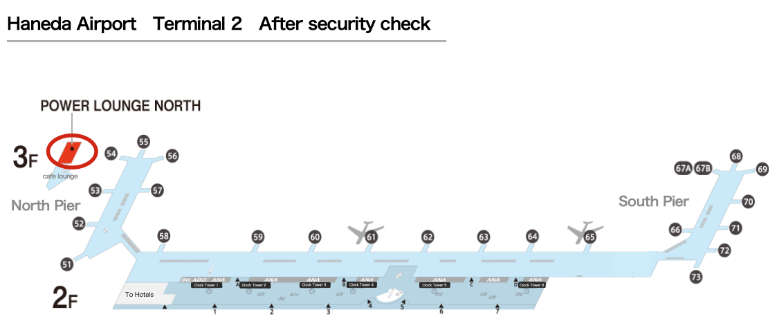 Airside-Located on the 3rd floor of the domestic departure gate area.Please use the elevator or escalator from the 2nd floor to access the facility.
