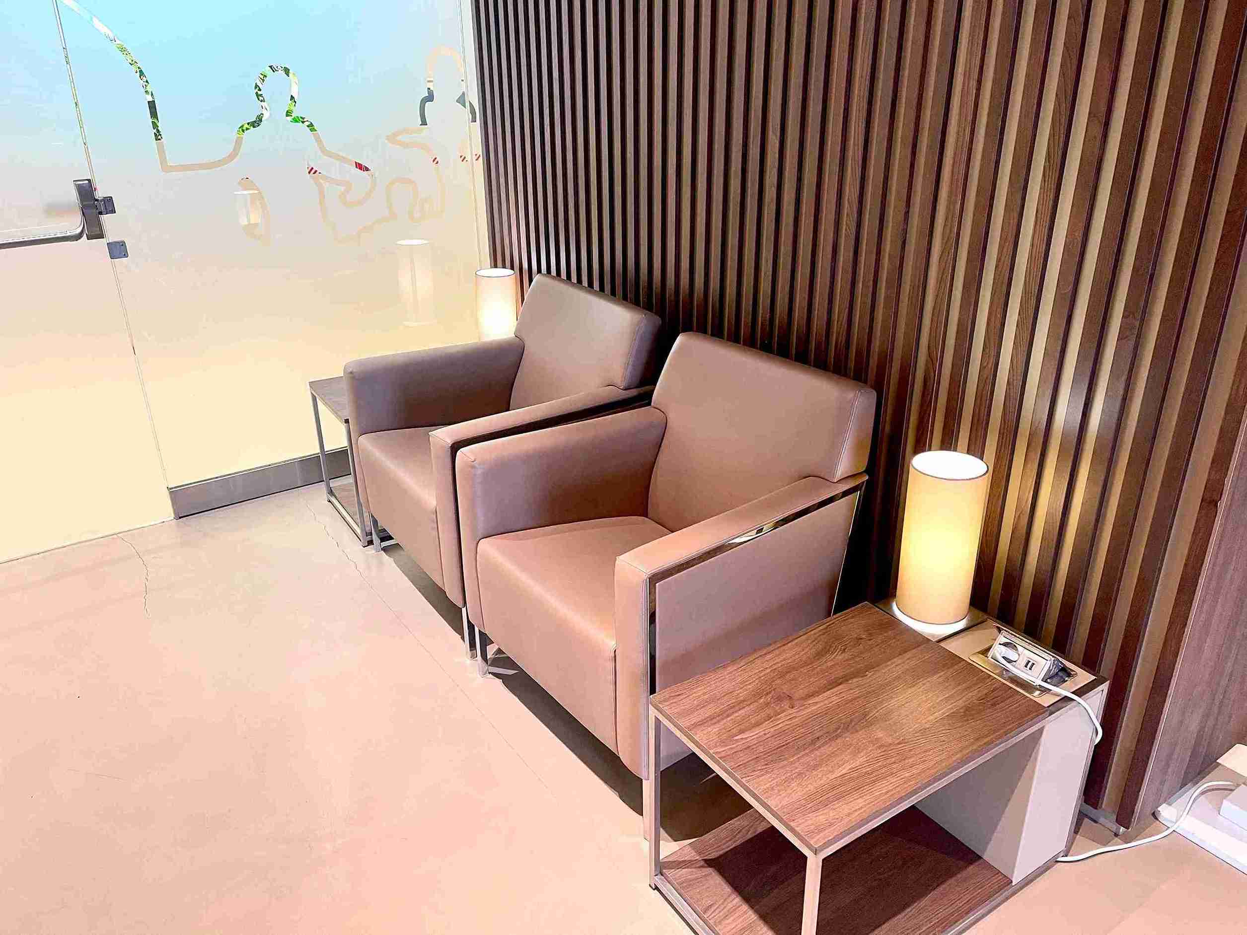 Airside - The lounge is located on the first floor, after airport security and duty free shops.