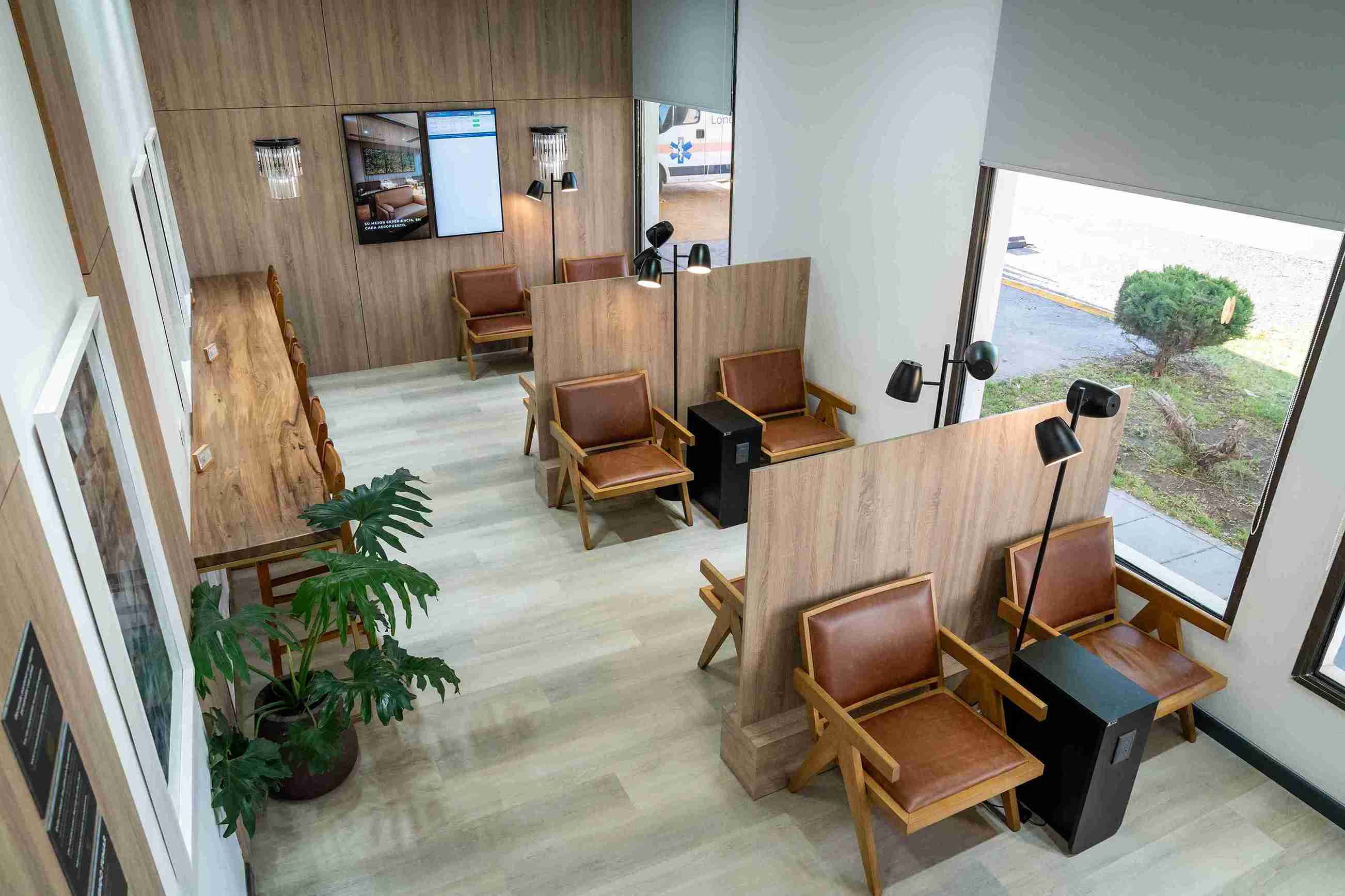 Landside - Before passport control and security check, the lounge is located on the main floor.